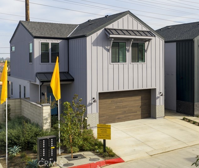 NEW, NEW, NEW! Model Home for sale, unfurnished! Two-Story Detached New Home with a light & bright end location of the community built by Bonanni Development - Residents have the choice of the highly acclaimed Huntington Beach or Fountain Valley School district! This exclusive enclave of detached, TWO STORY homes is nearly sold out! This is the popular final Plan 2 with thousands of included upgrades such as designer selected tile surrounds, high end upgraded quartz countertops, a spa styled shower with luxury tile and 8 foot glass doors, gorgeous luxury vinyl plank flooring and mor! Open concept living with gracious great rooms complete with a dining nook, island with seating for four and pre-wire for your pendant lights included. Ample storage with white shaker cabinets, large double door pantry and your choice of included quartz countertops and flooring. Kitchens include upscale GE Cafe series stainless steel appliances, with a GAS BURNING STOVE, microwave, dishwasher and refrigerator included! Smell the fresh paint and new home warranty! Owners enjoy a private driveway into their two car, direct access garages with ample storage space. Upstairs you will have 3 bedrooms, plus a large loft/second family room. The primary bedroom has a spa inspired bathroom with dual sinks and oversized shower with long bench plus spacious walk-in closets. This home is designed with 10 foot ceilings on the first level and 9 foot upstairs, making it exceptionally light & bright. Plus it has a wonderful private back yard with easy care landscaping plus block walls included, a private sanctuary space to unwind in. SOLAR included in the price and built with Cat5 high speed connectivity throughout. Located just minutes to the beach, fine dining, shopping and all major transportation corridors. Pictures are of model home
