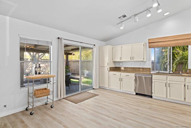 Come and see this beautiful move in ready home in one of North San Diego’s most desirable neighborhoods! This updated single-story home is located in the Santa Fe Hills community of San Marcos. This property has NO HOA and also includes owned solar that fully covers the electric bill. This is a 3 bed, 2 bath home that feels bright and open with high vaulted ceilings and modern finishes. Open the front door to a large living room ready for gatherings or relaxing. The refreshed kitchen ties together the living, dining, and outdoor areas. The bathrooms are renovated and include stylish vanities, upgraded lighting, and updated tub and shower areas. The primary bedroom offers direct access to the backyard through a sliding glass door, perfect for pets, kids, or morning coffee. The lot is oversized and provides privacy with no rear neighbors and plenty of space to entertain. The backyard features a built-in BBQ and fruit trees. There is room to garden, gather, or possibly expand. RV access and parking could allow room for toys or future additions. Conveniently located minutes from Cal State San Marcos, Palomar College, top-rated schools, trails, parks, shops, and dining. I-15 and I-5 freeways are very close!