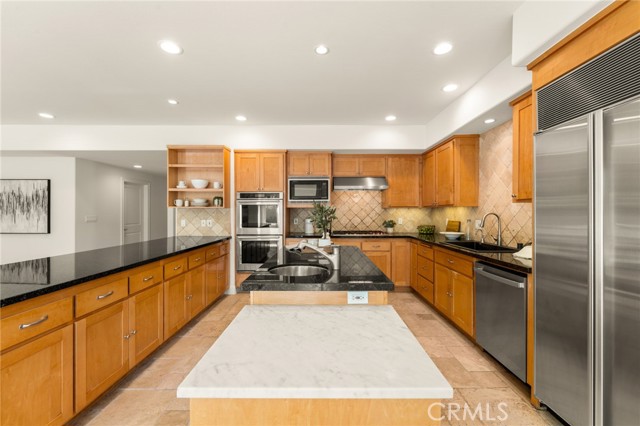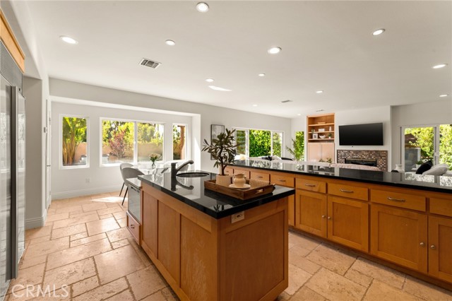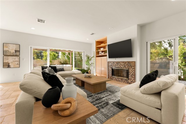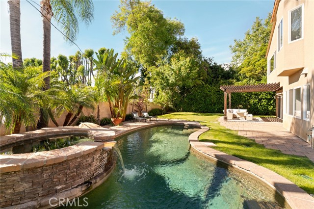 Nestled within an exclusive gated community in the heart of Encino, this beautifully maintained estate is situated on an expansive 11,000+ sq. ft. lot in a prime central location. A dramatic double-height foyer sets the tone as you enter the home, opening to a spacious formal living and dining room designed for effortless entertaining. The well-appointed kitchen features top-of-the-line appliances, a walk-in pantry and sun-drenched breakfast nook, and opens seamlessly to the inviting family room. Multiple sliding glass doors create a seamless indoor-outdoor connection with the serene backyard retreat, which is anchored by a sparkling PebbleTec pool and spa. Upstairs, you’ll find five generously sized bedrooms, including three with ensuite baths, highlighted by an expansive primary suite with a walk-in closet and spa-like bathroom, complete with a soaking tub, oversized shower and dual sink vanity. Additional features include a main level ensuite bedroom, dedicated laundry room, high ceilings throughout, a security system with cameras and three-car garage. Ideally located south of the Boulevard within the top-rated Lanai School District and just moments from Ventura Boulevard’s premier shops and restaurants.