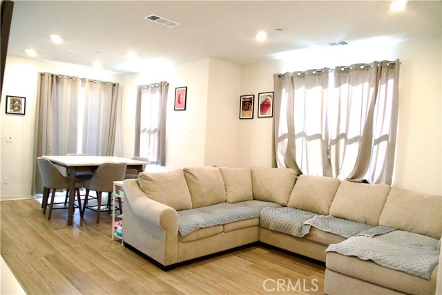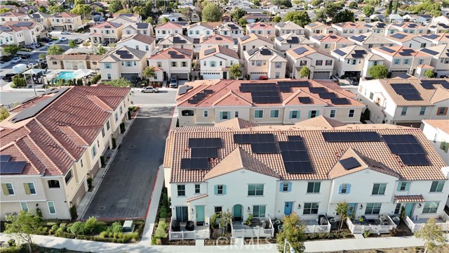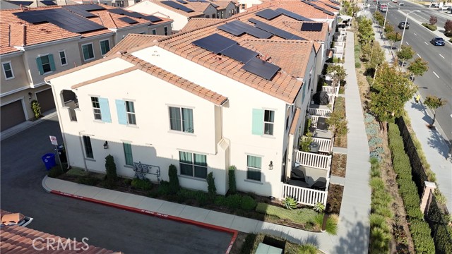 Tucked inside the gated Foothill Grove community, this corner-unit townhome offers a bright, open layout designed for comfortable everyday living. Large windows bring in great natural light, connecting the living and dining areas and creating an easy, functional flow. The kitchen opens to the main space, making it ideal for both daily use and entertaining, with direct access to a private patio for outdoor relaxation. A convenient powder room is located downstairs for guests. Upstairs features three bedrooms and two full baths, including a spacious primary suite with a walk-in closet, dual vanities, and a separate tub and shower, plus a private balcony with neighborhood views. Additional highlights include indoor laundry, an attached garage with direct access, and leased solar for improved energy efficiency. Residents enjoy access to community amenities including a pool, spa, BBQ area, and playground, all in a location close to shopping, dining, schools, and commuter routes.