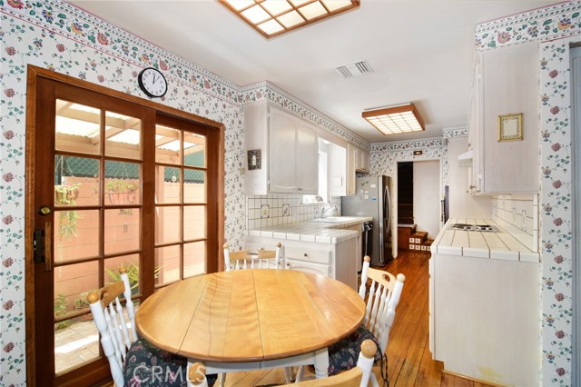 A home that can retain its original owners for nearly seven decades, affording them the opportunity to happily raise four children, must hold something very special indeed. Come harness all its’ positive energy to create a lifetime of happiness for you. Situated on a desirable quiet cul-de-sac where those same four children relished countless hours of frolic, cementing cherished childhood memories. Inside this warm wonderful abode, discover hardwood flooring throughout and a spacious living room with beautiful wood beam ceilings, classic brick fireplace and unique bar. An adjacent dining area also offers a charming brick fireplace. Large upper-level primary suite features a walk-in closet and private bathroom. Three bedrooms and two additional baths add to the appeal. Outside enjoy covered dining/entertaining and grassy area. Newer roof, newer water heater plus an extra-large driveway further enhance. Live in just the way it is or remodel to your hearts’ desire. In addition, your mere moments to Cedars/Tarzana medical center and just a short stroll to the Blvd. As an added bonus, all schools for this home are sought-after charter schools. Don’t miss!