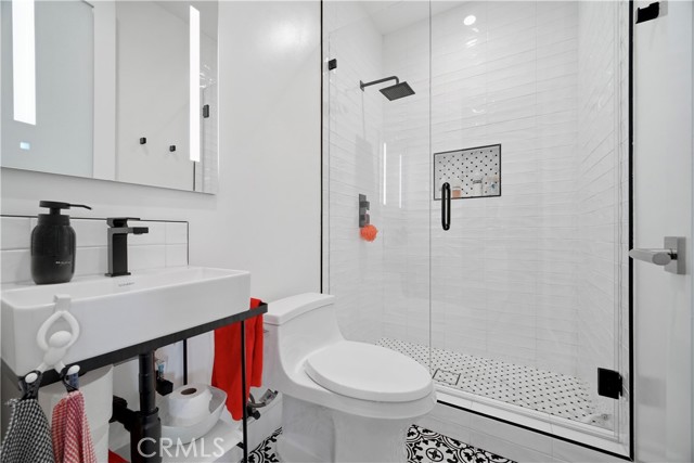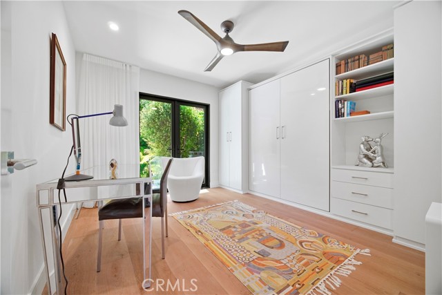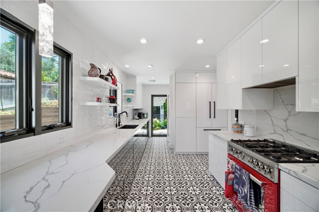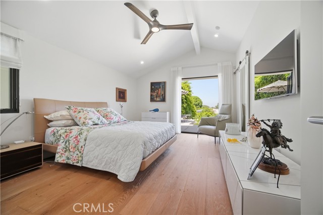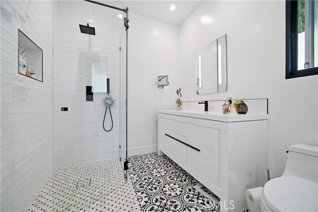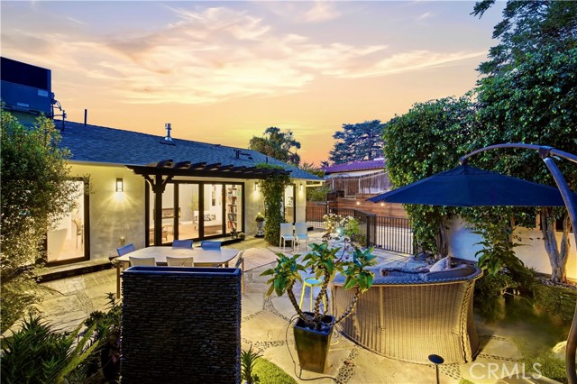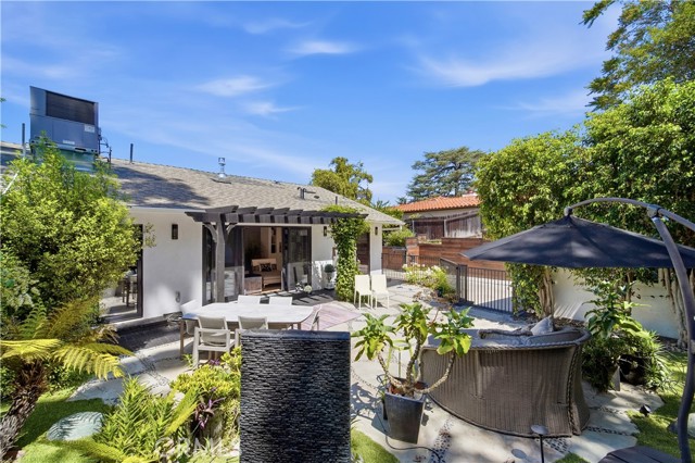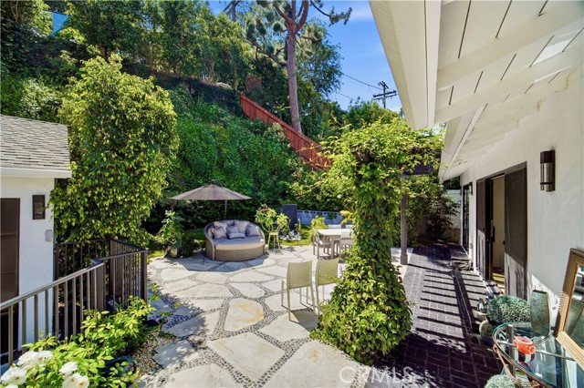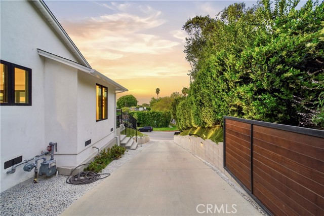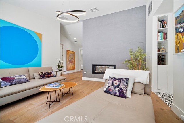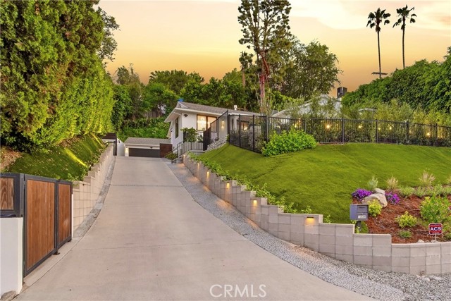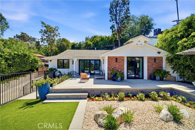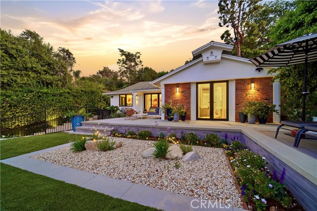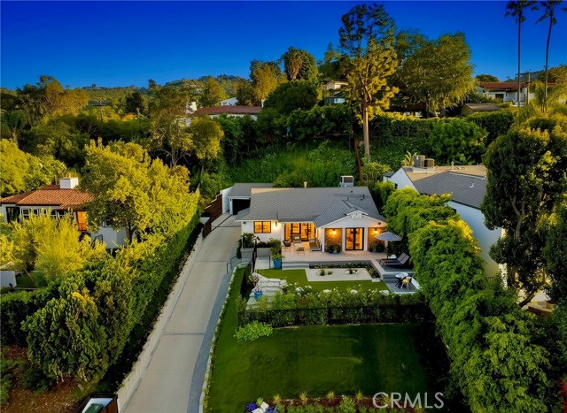 Set above the street behind a private drive, this reimagined Mid Century stunner in prime Sherman Oaks blends architectural pedigree with refined contemporary design. Originally built by renowned builder WM Mellenthin, the two bedroom, two bath residence spans approximately 1,500 square feet and has been extensively rebuilt with elevated finishes and seamless indoor outdoor flow. Taken down to the studs, the home features new plumbing, electrical, HVAC, air ducts, a tankless water heater, and an installed EV charger, offering modern efficiency and peace of mind. Open living spaces with soaring ceilings, Italian white oak flooring, and expansive windows and doors create an airy yet warm atmosphere filled with natural light. Designer lighting, smart home controls, and a striking double sided fireplace enhance the living areas. The kitchen is both sophisticated and functional, featuring premium appliances, sleek cabinetry, and thoughtfully curated finishes. Spa inspired bathrooms and custom details throughout further elevate the interiors, including custom closets, modern interior doors, and tailored window treatments. Sliding doors extend the interior to beautifully curated outdoor spaces. Newly designed landscaping, hillside improvements with drip irrigation, and front and rear landscape lighting create a private retreat framed by mature greenery. The nearly 9,000 square foot lot offers exceptional privacy along with treetop and valley outlooks, enhanced by a smooth plaster exterior and updated outdoor lighting. Located within the highly sought after Dixie Canyon Charter School District and just moments from Ventura Boulevard’s shopping and dining, this distinctive residence pairs Mid Century character with extensive designer upgrades and modern infrastructure, delivering effortless indoor outdoor living.