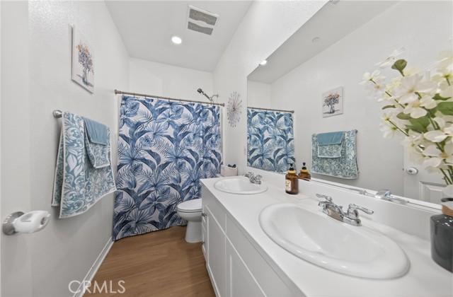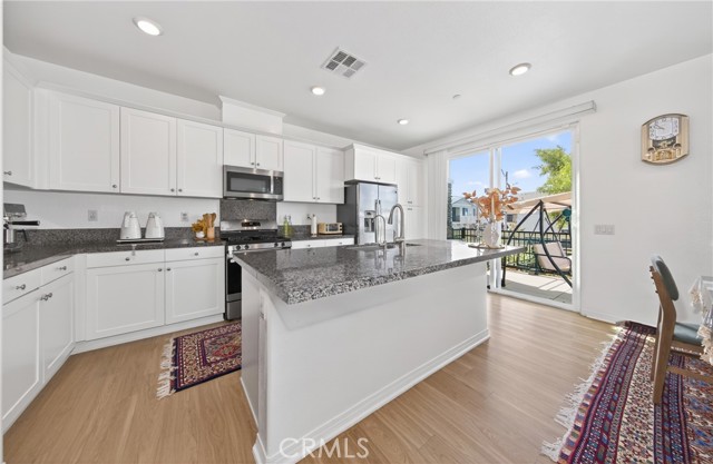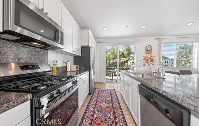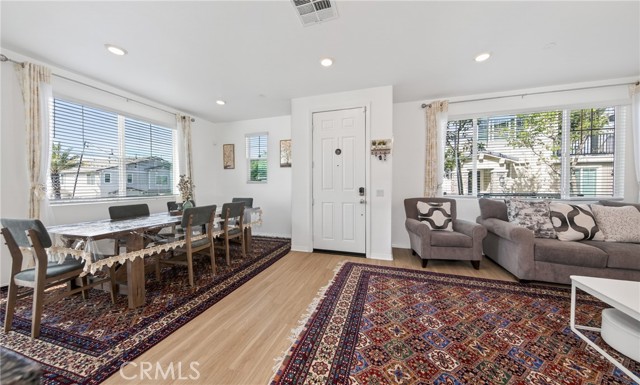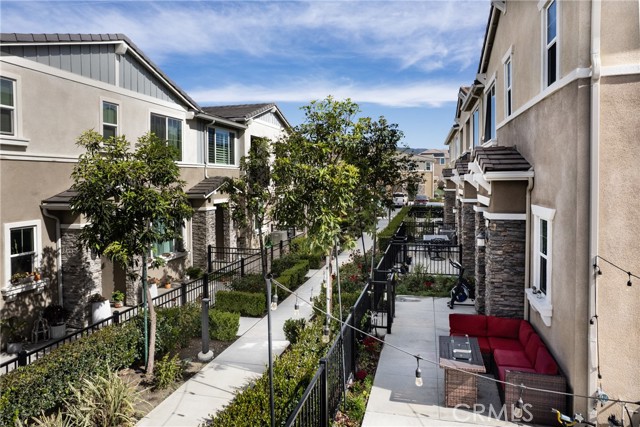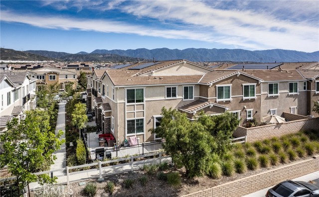 Honey Stop the car — your new home awaits at 16502 Casa Grande #356 in the coveted Woodbridge at Gabion Ranch community of North Fontana. This rare corner residence (Residence 5) offers sweeping mountain and city views and 1,826 sq. ft. of thoughtfully designed living space with 3 bedrooms, 2.5 baths and a large upstairs loft. Enter through a private, fully enclosed wraparound porch into an open main level featuring a spacious living room, dining area and kitchen with a large island, recessed lighting, upgraded flooring and a slider to the rear patio. Downstairs also includes a convenient powder room and direct access to the attached two-car garage, finished with epoxy flooring and a Tesla charging station. Upstairs you’ll find a generous loft ideal for a home theater, laundry room, two well-sized bedrooms and a full bath on the north side. The primary suite on the south side boasts a separate tub and shower, walk-in closet and dramatic city views. Bedrooms are carpeted with upgraded flooring in the hall and loft. Comfort and efficiency features include central air and heat, a whole-house fan and a Solar 20/20 plan providing a 20% discount on electricity. The expanded wraparound patio and new slab increase usable outdoor space—perfect for kids, pets or relaxing outdoors. Exceptional HOA-maintained grounds with nearby community amenities: pools (one within a short walk), dog park, playground, splash park, clubhouse and sports courts. Convenient North Fontana location with easy access to the 210 and 15 freeways, schools, shopping and services. Schedule your showing today — this one won’t last.