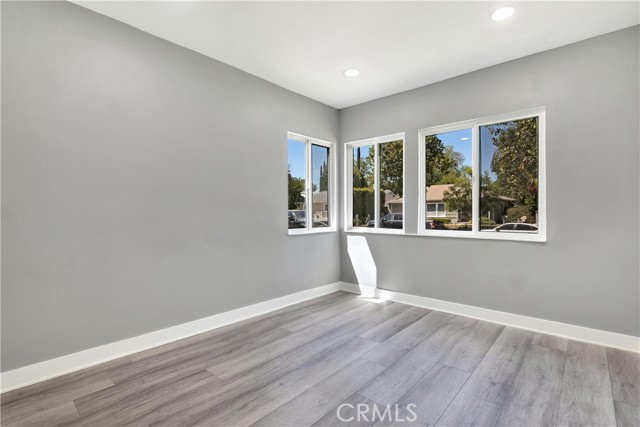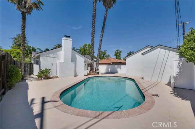 Recently updated and truly move-in ready, this fresh, sleek 4 bed, 3 bath South of the Boulevard Tarzana home pairs clean contemporary finishes with the strong lines and character of its original mid-century bones. Upgrades include recessed lighting, updated flooring, wide baseboards, and new windows throughout. A verdant front lawn and wide brick walk set the tone, leading to an open, light-filled living space with a glass slider opening to the rear patio for easy indoor-outdoor flow. The fully renovated kitchen is crisp and modern with gray shaker cabinetry, contemporary hardware, quartz countertops, and stainless-steel appliances, while two secondary bedrooms offer comfortable flexibility for guests, family, or office use and are served by an updated bath with an oversized tiled shower and dual shower heads. Privately situated, the third bedroom features a bay window, recessed lighting, and a beautifully updated en-suite bath with dual shower heads. A dedicated laundry room adds practical convenience, and the large bonus room expands the floor plan with exceptional versatility as a possible fourth bedroom, family room, or additional living space, distinguished by high vaulted ceilings, a quartz-clad fireplace, striking wood-beamed wall and ceiling detail, its own en-suite ¾ bath with double shower heads, recessed lighting, and a glass slider to the backyard. Outside, a generous patio, new vinyl fencing, raised deck, and in-ground pool create an inviting setting for entertaining or relaxing, while the gated drive leads to a detached 2-car garage with added utility and future potential. Set in one of Tarzana’s most desirable pockets, just moments from Ventura Boulevard’s shopping, dining, and everyday conveniences, this is a rare opportunity to enjoy a turnkey contemporary home with style, substance, and location already in place. Don’t miss out on the chance to make this your next home