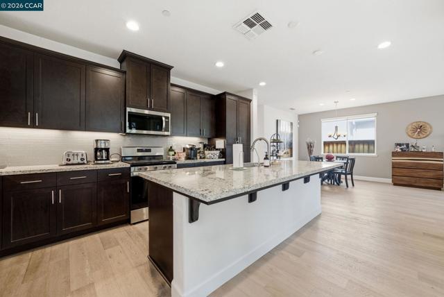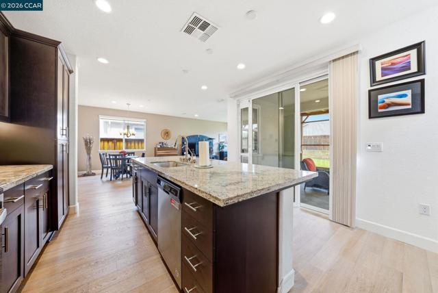 Welcome to 1671 Mulholland Dr in the highly sought-after River Islands community of Lathrop. Built in 2020, this spacious 4-bedroom, 3-bathroom home offers 2,016 sq ft of modern living with an open-concept layout designed for both comfort and entertaining. The home features a bright and airy floor plan, a well-appointed kitchen that flows seamlessly into the living and dining areas, and a full bedroom and bathroom on the main level—perfect for guests or multi-generational living. Upstairs, you’ll find generously sized bedrooms and a versatile layout to fit your lifestyle. The backyard is a standout feature, offering a covered patio area that’s perfect for relaxing, hosting gatherings, or enjoying quiet evenings outdoors. Located in the master-planned River Islands community, residents enjoy access to scenic lakes, walking and biking trails, parks, and top-rated schools. The area is also conveniently close to a variety of shops, restaurants, and everyday essentials, with easy access to I-5 for commuting. This is a great opportunity to own a newer home in one of Lathrop’s most desirable neighborhoods with a true blend of lifestyle and convenience.