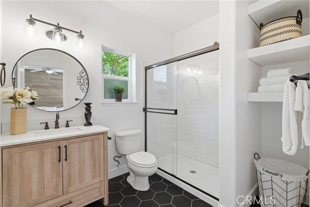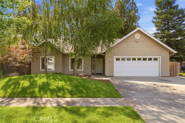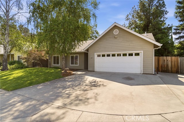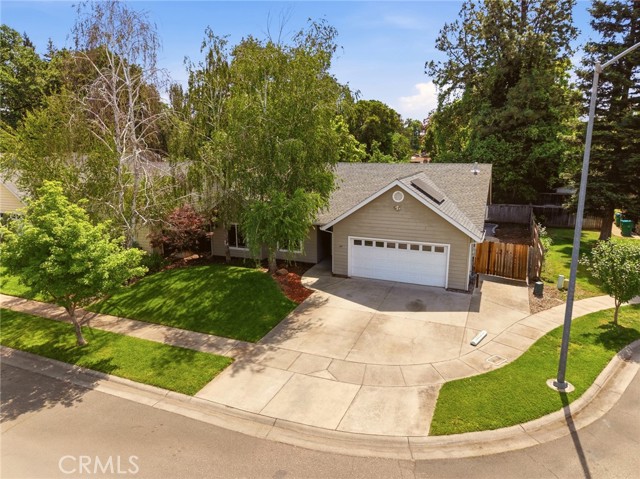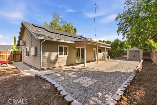 Hidden in plain sight in central Chico—minutes to Enloe Medical Center, California State University Chico, food, shopping, and everything you actually use—this one just makes sense. Cul-de-sac living = no cut-through traffic, no chaos. Mature trees out front, a spacious driveway, and gated side yard access (boat, trailer, toy potential?). Built for efficiency, this home features 26 solar panels, battery backup, and R45 insulation—helping keep those monthly costs low, and comfort high. Inside, it's bright, open, and built for real life. Tall ceilings, easy flow, and a gas fireplace that hits just right. The kitchen offers granite tiled counters, stainless appliances, newer sink, and an island built for coffee mornings, quick dinners, late-night chats. The primary suite brings the style—wood slat accent wall, backyard access, and a clean, modern ensuite with hex tile floors, walk-in shower, newer vanity, and a legit walk-in closet. Backyard = low maintenance, high enjoyment. Covered patio, storage shed, and room to relax without the weekend workload. And the garage? Fully dialed with 220V + mini-split (2024) perfect for your gym, workshop, side hustle HQ—you choose. Affordable. Energy-smart. Move-in ready. Don’t overthink this one.