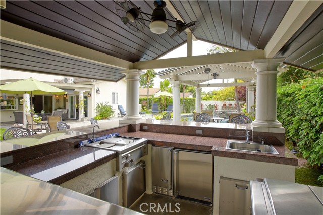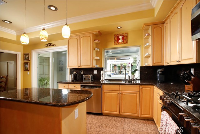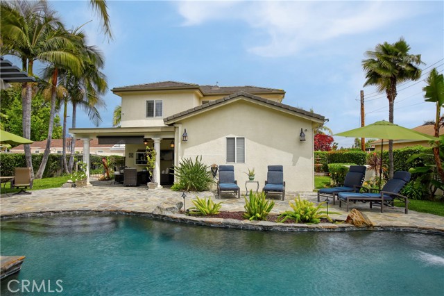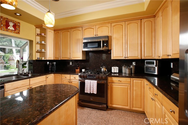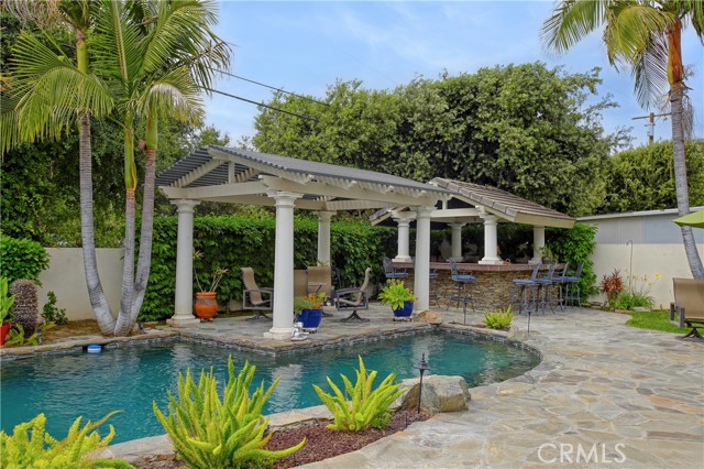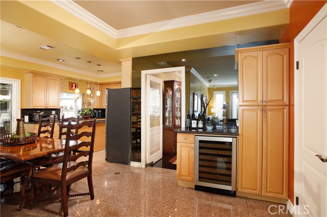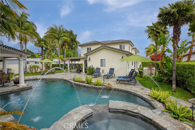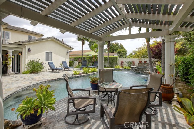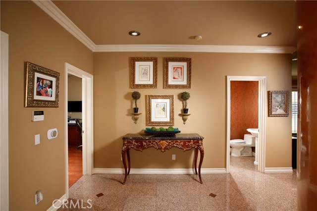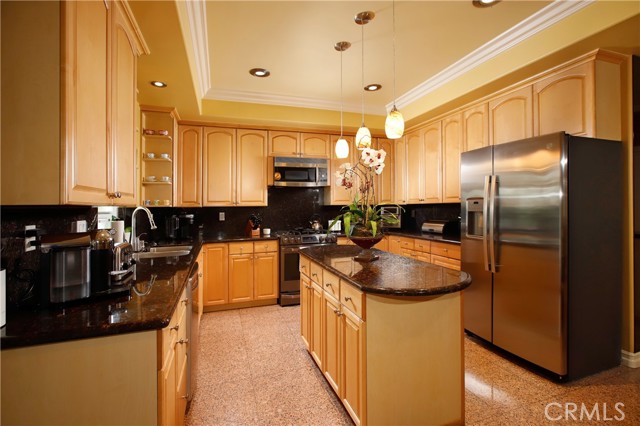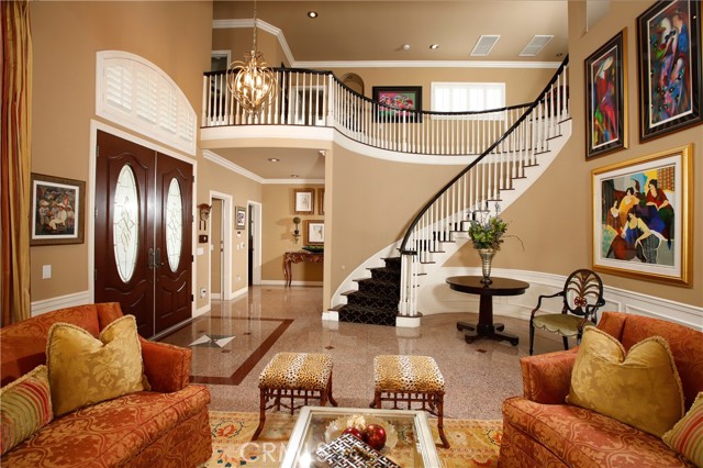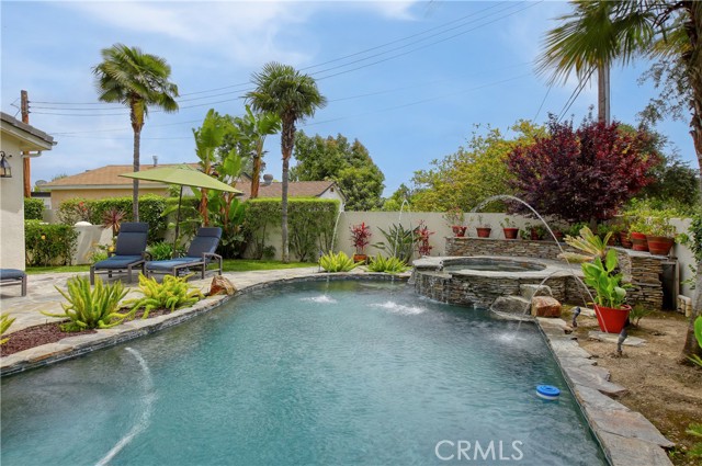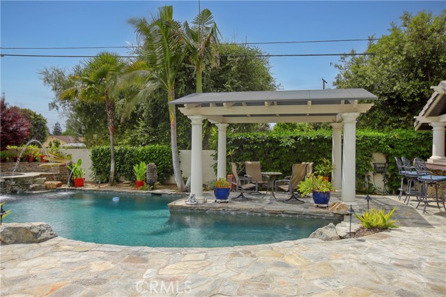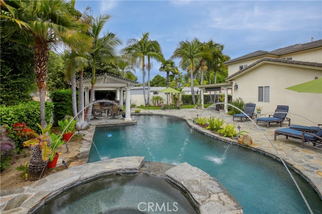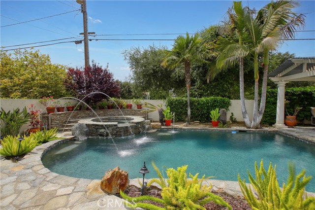 Stunning two-story home in highly sought-after Temple City, offering expansive living spaces, exceptional versatility, and true move-in ready condition. Beautifully maintained, this impressive residence is thoughtfully designed for both everyday comfort and effortless entertaining. A grand foyer with soaring ceilings and a elegant staircase creates a striking first impression and flows seamlessly into the main living areas. The formal living room features dramatic ceiling height, granite flooring, crown molding, and a gas fireplace with an elegant mantle. The dining room, framed by an arched entry, showcases, classic wainscoting, and a coffered ceiling. The spacious kitchen is beautifully appointed with a center island, granite countertops, walk-in pantry, wine cooler, and eating area seamlessly opens to the family room for effortless everyday living and entertaining. French doors lead to a charming side yard, where a tranquil fountain creates a serene indoor-outdoor connection. The home offers four generously sized ensuite bedrooms, providing comfort and privacy for all. The luxurious primary suite features a spacious walk-in closet and a spa-inspired bath complete with a soaking tub and separate shower. Additional highlights include granite flooring on the main floor, plantation shutters, dual-pane windows, recessed lighting, crown molding, central air and heat, central vacuum system, built-in speakers, bonus room, additional exterior bathroom, laundry room with sink, and attached garage with built-in cabinets and direct access. The professionally landscaped grounds are designed for exceptional outdoor living and entertaining. Gated front grounds feature an automated circular paver driveway centered around a decorative fountain, offering both elegance and convenience. The backyard unfolds as a private resort-style oasis, complete with a covered patio, sparkling pool, relaxing spa, built-in outdoor kitchen and BBQ. This distinguished property was honored with First Place in the Los Angeles & San Gabriel Valley Chapter 48th Annual Beautification Awards (2006), a testament to its outstanding design and curb appeal. This exceptional home combines space, style, and resort-style amenities in one remarkable offering.