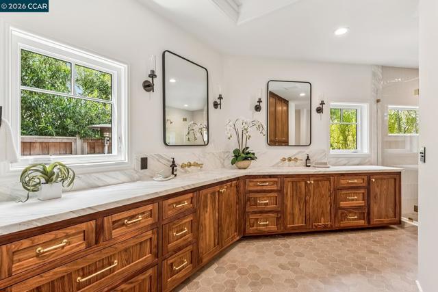 Main House: 4 Bed | 2.5 Bath | 3,271± Sq. Ft. | .55± Acre Lot Guest House: 1 Bed | 1 Bath | 730± Sq. Ft. 1,500-Bottle Wine Cellar | Subterranean Car Lift | 788± Sq. Ft. Garage Tucked into a treasured setting in Happy Valley, 1089 Rahara Drive offers a rare sense of calm that’s felt the moment you arrive. Set above the rhythm of everyday life, the home carries that feeling throughout, with natural light, generous volume, and a floor plan that feels both intuitive and welcoming. This is a home designed to be lived in with ease, where thoughtful details and warm, livable spaces come together in a way that feels effortless and lasting. THE MAIN HOUSE At 3,271± square feet, the main house lives larger than expected. Tall ceilings lift every room, light pours in from multiple directions, and the floor plan has an easy logic to it, the kind that makes daily life feel effortless rather than managed. There are nooks that become favorite spots: a kitchen bay window, a mudroom off the kitchen that quietly absorbs the chaos of coming and going, a bar with its own counter and sink that earns its place every single evening. The kitchen is the heart of it. Two skylights overhead and windows that frame the outside make it one of the brightest, most welcoming rooms in the house. Calacatta Bettogli marble runs across the counters, and the appliances, Wolf, Sub-Zero, Miele, are the kind that disappear into the background and simply perform. The walk-in pantry keeps everything in its place. The primary suite is quiet and considered: limestone hexagon floors, a custom walnut vanity, brass fixtures, a large shower with a built-in seat, and a walk-in closet that is genuinely outfitted rather than merely large. Down the hall, paneled ceilings and wainscoting give the home a sense of architecture in the spaces between rooms, the kind of detail that you notice and then can never un-notice. THE GUEST HOUSE The 730± square foot guest house has its own gravitational pull. A private balcony off the bedroom, a marble and limestone bath, a living space with a built-in lounge. Guests settle in and stop counting the days. Ideal for extended stays or a home office, it’s a space that adapts easily depending on what’s needed. THE WINE CELLAR A temperature-controlled, 1,500-bottle wine cellar designed for proper storage. For collectors, it’s essential. For others, it’s a standout feature that adds depth and character to the home.