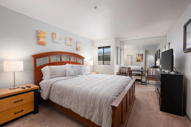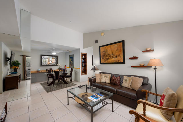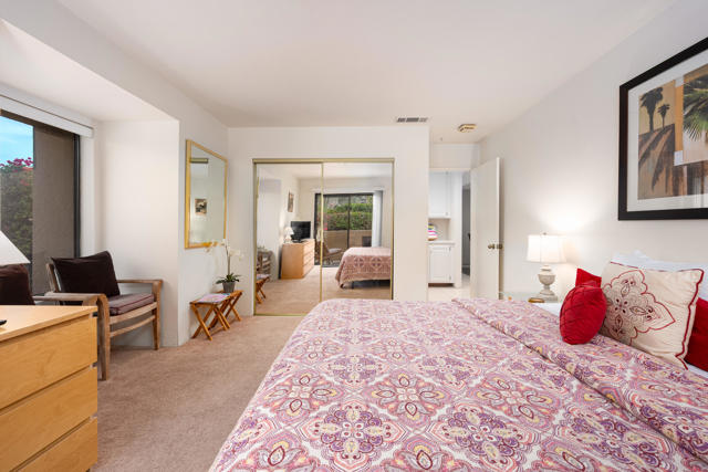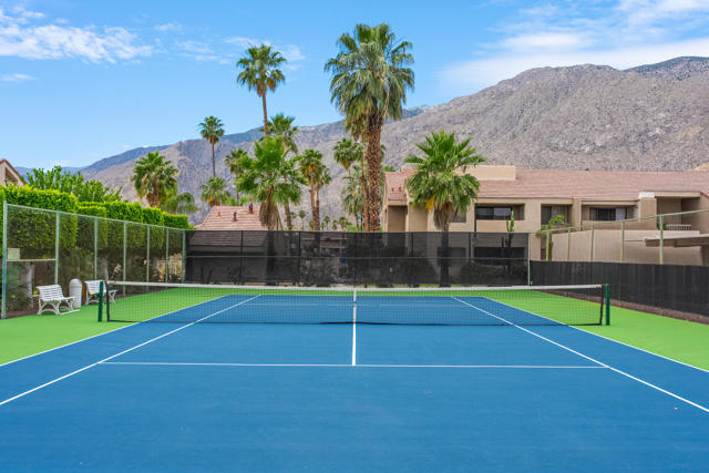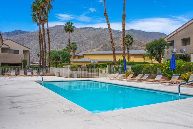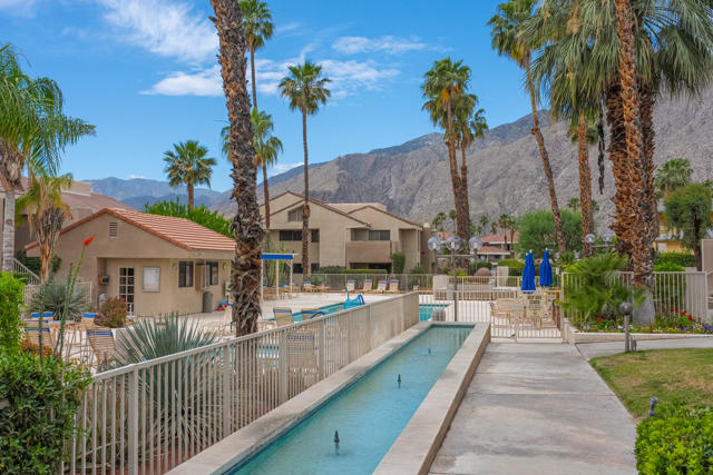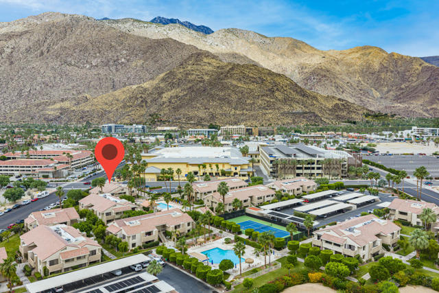 One of only a few single-level, bungalow-style units in the entire community, this 2-bedroom, 2-bath condo offers no neighbor above and features two private patios with stunning mountain views. It is among the most desirable layouts Plaza Villas has to offer and rarely comes to market.The location is unmatched at this price point. Just steps from Agua Caliente Casino and The Spa at Sec-he, minutes from the Palm Springs Convention Center, and a short walk to the restaurants, boutiques, and nightlife of Palm Canyon Drive, you will not find a more centrally located community and unit.Plaza Villas permits 7-night minimum short-term rentals, making this an exceptional income-generating opportunity in one of the desert's most active vacation rental markets. The resort-style community features two pools and spas, tennis and pickleball courts, gated security, and HOA coverage that includes water, trash, cable, and internet, keeping ownership effortless whether you're here full-time, seasonally, or as an investor.Priced competitively with standard 2-bedroom units in the complex, yet offering a layout, privacy, and lifestyle that cannot be replicated. Motivated seller. Don't miss it.