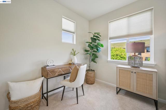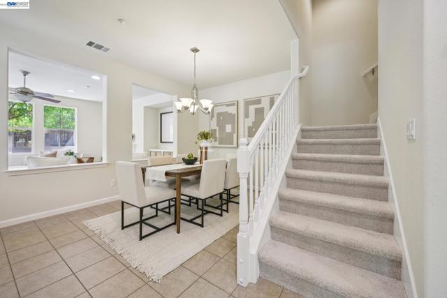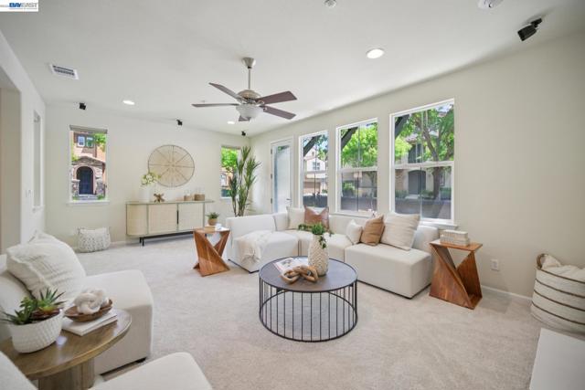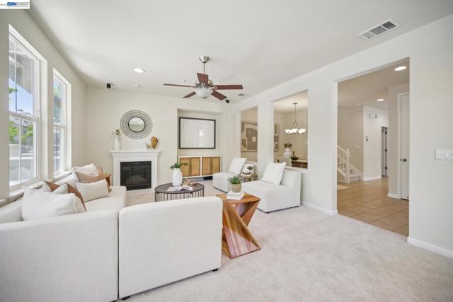 Welcome to 5351 Fioli Loop, a beautifully updated corner residence in one of San Ramon’s most sought-after neighborhoods, where comfort, functionality, and location come together seamlessly. Perfectly positioned within walking distance to top-rated schools, including Dougherty Valley High School, Windemere Ranch Middle School, and Hidden Hills Elementary School, this home offers exceptional convenience for families seeking premier education. Flooded with natural light, this desirable corner unit showcases a thoughtfully designed floor plan across three spacious levels. The main floor features a bright and inviting kitchen equipped with stainless steel appliances, complemented by newly painted white cabinetry. The open concept dining and living areas are anchored by a cozy fireplace and provide direct access to a private patio, perfect for relaxing or entertaining. Upstairs on the second level, you will find two generously sized bedrooms, a full bathroom, and a convenient laundry room. A versatile loft offers flexibility as a home office, playroom, or potential fifth bedroom. The expansive primary suite is a true retreat, complete with a sitting area and a private balcony. The third floor offers a unique studio style space with its own full bathroom, ideal for guests, extended family, or a private workspace. Freshly updated with new interior paint and brand new carpet throughout, this home is move in ready and waiting for its next owner to enjoy. Do not miss this exceptional opportunity to own a light filled, flexible home in an unbeatable San Ramon location.