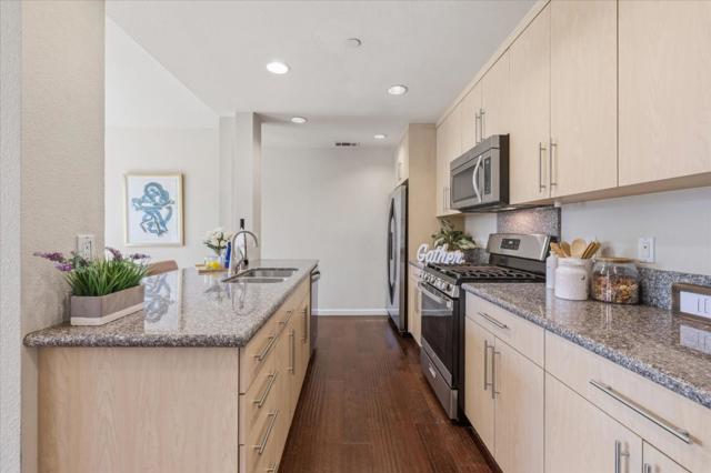 The Best Value in Sunnyvale! STYLISH, PRIVATE & INVITING IN A CHARMING BOUTIQUE COMMUNITY! This welcoming 2-bedroom, 2-bath home features a highly desirable floor plan with a seamless flow for everyday living and entertaining. Freshly refreshed with brand-new carpet, the home feels warm, comfortable, and move-in ready. The bright living and dining spaces open to a private patio, creating an effortless indoor-outdoor connection for morning coffee or relaxing evenings. The kitchen offers generous cabinetry and workspace for daily living and gatherings. The spacious primary suite offers a peaceful retreat with an en-suite bath and spacious walk-in closet, while the second bedroom provides flexibility for guests or a home office. Set within an intimate boutique community of 34 residences, the home offers a rare sense of privacy, including sharing only one wall with a neighbor. Enjoy a prime location just moments to Seven Seas Park, VTA, and Grocery Outlet, with quick access to Hwy 101 & 237 and major tech campuses. Complete with 1-car attached garage, an additional designated parking space, storage closet, plus abundant guest and street parking. A fantastic opportunity to enjoy comfort, privacy, and convenience in a sought-after location!