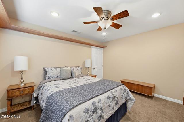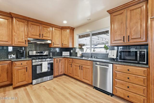 Welcome to 3279 Avenida Simi -- a true Southern California retreat where outdoor living takes center stage. There's nothing else like it in Simi in this price range! Step into your own private backyard paradise featuring a sparkling newer pool and spa with automatic cover, a large covered outdoor kitchen with a smoker and Blackstone griddle, and a cozy firepit perfect for evening gatherings, plus a large covered patio area. Whether you're entertaining a crowd or enjoying a quiet night under the stars, this resort-style space delivers. For those with toys, this property is a standout -- offering RV parking with water and electrical hookups, an oversized driveway, and plenty of room to store and enjoy it all. Inside, the home offers 4 bedrooms, 3 full bathrooms, and over 3,000 square feet of flexible living space, highlighted by two spacious primary suites, each with their own en-suite bathroom. The downstairs suite is ideal for multi-generational living or guest quarters, while the upstairs suite showcases sweeping mountain views and is perfect as a bedroom, home office, media room, home gym, or private retreat. The updated kitchen features LVP flooring, stainless steel appliances, and generous cabinetry with modern hardware. A formal dining area and custom built-in bar with granite countertops create the perfect setup for entertaining indoors. Additional highlights include a 3-car garage with custom cabinetry and storage solutions, an indoor laundry room, and a dedicated dog run. Energy efficiency and peace of mind come standard with OWNED solar panels, a back-up battery panel, Generac whole house generator, upgraded 200/225 amp EV-ready electrical panel, and a newer AC condenser. Ideally located near top-rated schools, shopping, and dining, this exceptional home blends comfort, versatility, and incredible indoor-outdoor living. If you've been waiting for a property that checks every box -- especially for entertaining and enjoying the outdoor lifestyle -- this is it. Schedule a tour and make this home yours today!