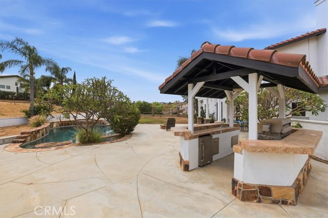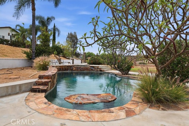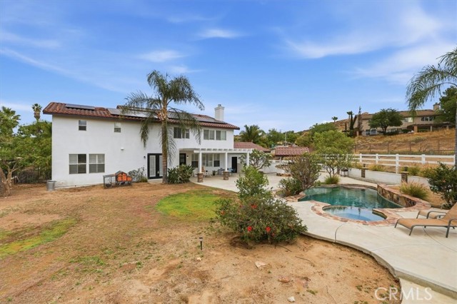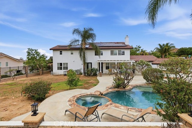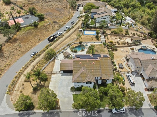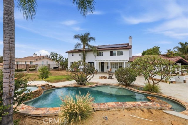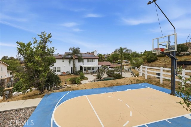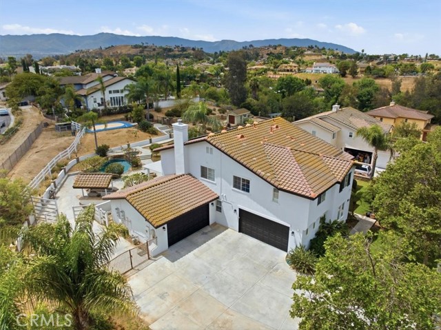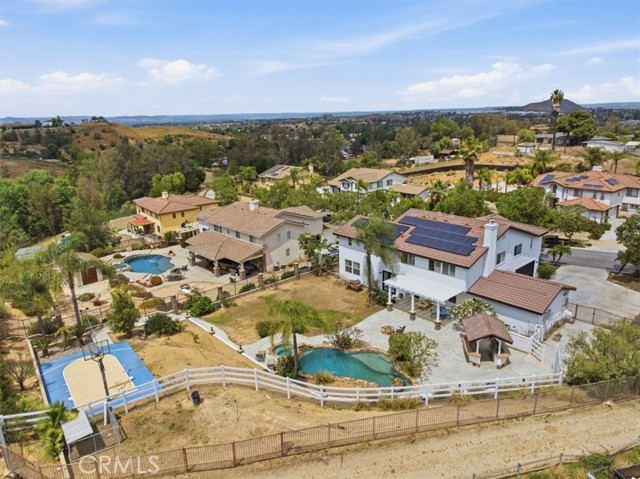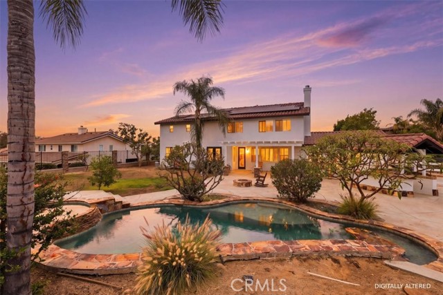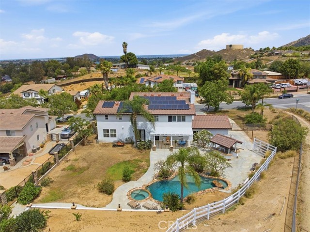 Discover elevated living in this stunning Norco Hills estate, where space, style, and comfort come together on an expansive 0.51-acre corner lot in a quiet cul-de-sac. Boasting approximately 3,895 sq ft, this beautifully updated home offers 5 bedrooms, a spacious bonus room, and 3.5 bathrooms—including a convenient main-floor bedroom and bath, perfect for guests or multigenerational living. Step inside to soaring cathedral ceilings and a freshly painted interior and exterior that create a bright, inviting atmosphere. The formal living room flows seamlessly into the dining room through custom barn doors, while the warm and welcoming family room features a cozy fireplace, hearth, and built-in media niche. The chef-inspired kitchen is designed to impress, featuring stainless steel appliances, a double oven, 5-burner cooktop with hood, granite breakfast bar island, quartz countertops, subway tile backsplash, pantry, and a charming coffee bar. Throughout the home, you’ll find thoughtful upgrades like wood-look plank tile flooring, luxury vinyl plank upstairs, shutters, and a sweeping staircase that adds a dramatic touch. Upstairs, the large primary suite is a true retreat with double-door entry, its own fireplace, a private sitting area, dual mirrored walk-in closets, and a beautifully upgraded bathroom with quartz counters, a deep soaking tub, and a spacious walk-in shower. The backyard is an entertainer’s dream—complete with an Alumawood patio cover, flagstone-accented pool and spa, firepit, BBQ island, and even a sports court. Additional highlights include RV parking, a 4-car garage, solar system, and proximity to parks, shopping, schools, and easy freeway access. Offered at $1,450,000, this exceptional property blends luxury, functionality, and outdoor enjoyment in one of Norco Hills’ most desirable settings.