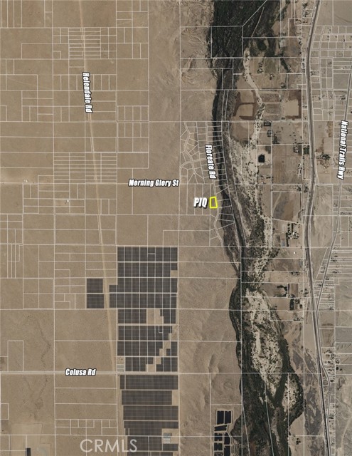2.5 ac Desert Living parcel on Floreate Rd across the street from the Mojave River. River does flow above ground in this area but it is more of a marsh. Access via Hwy 395 to Colusa Rd, to Helendale Rd, to Purple Sage/Morning Glory, to Floreate. 4x4 Vehicle recommended, sand is very soft at Morning Glory and Floreate.