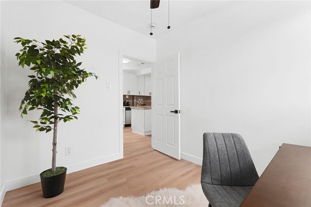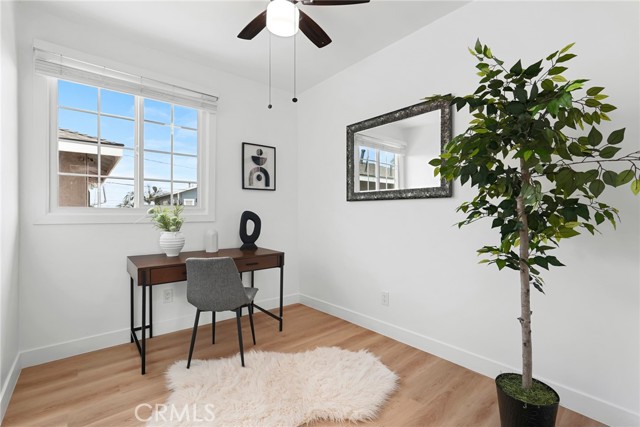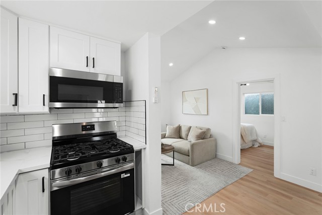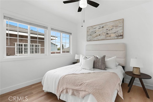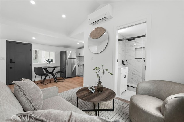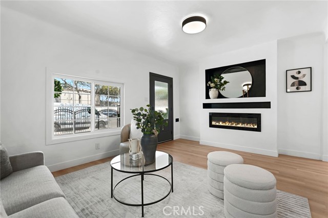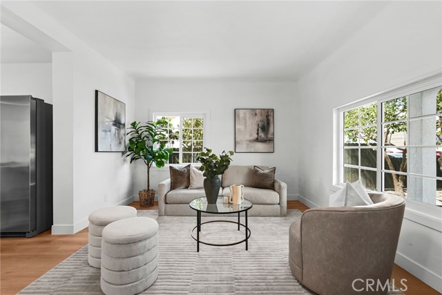 Duplex property in Los Angeles featuring two separate units. The front unit includes 4 bedrooms and 2 bathrooms. The rear unit includes 1 bedroom and 1 bathroom. Property includes kitchen appliances. Garage area offers potential for additional use. Buyer to verify all possibilities. Conveniently located near freeways, shopping, and dining. Property is ready for occupancy.