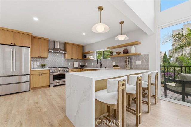 Stunning Multi-Level Home with Designer Touches and Private Outdoor Retreats Welcome to this beautifully updated multi-level residence, where modern upgrades meet timeless charm. Featuring new HVAC, new gas water heater, and new appliances, this home is move-in ready with comfort and style in every corner. Enjoy serene privacy and shade from mature trees and lush hedges, while multiple outdoor spaces—including a bonus covered front balcony perfect for morning coffee—offer peaceful retreats. A custom spiral staircase connects the upper deck to the bottom patio, adding architectural flair and convenience. Inside, you'll find a spacious, light-filled layout with large windows spanning a two-story open living space, recessed lighting throughout, and elegant finishes like white oak cabinetry, quartz countertops, and LVP flooring. The chef’s kitchen boasts a wine fridge, bar area, and a generous kitchen and dining space ideal for entertaining. The bottom level features a luxurious primary en suite with a stone fireplace, walk-in closet, and direct access to the backyard and porch. The second story hosts the main living, dining, and kitchen areas, along with a balcony/porch and the spiral staircase leading down. On the third story, you'll find two additional bedrooms, an enclosed laundry roomfor side-by-side washer/dryer, and a private front patio. Located in the vibrant Sawtelle neighborhood, this home offers easy access to exceptional dining and shopping in West LA, Brentwood, and Santa Monica. Quick freeway access to the 10 and 405 and minutes from LA’s beach communities. This property is a rare opportunity to own a beautifully updated home in one of LA’s most desirable neighborhoods. Whether you're relaxing by the fireplace, enjoying the shaded privacy of mature trees and hedges, or entertaining guests on one of the many patios, this home offers the perfect Westside lifestyle.