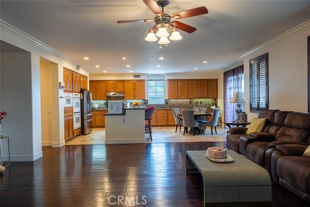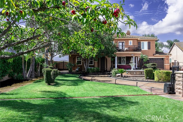 Exclusive home in the city of Eastvale.This home has it all: Cul-de-sac location, size, upgrades & stunning grounds on 13,068 Sq.Ft. Very well maintained home with 6 bedrooms plus loft, 4.5 baths, a spacious 4 car garage, circle drive way, with a beautiful fountain, that will provide parking for an additional 9 cars, making for a total of 13 car parking space at this house. The front yard is beautifully landscaped and gated with block and wrought iron fence, light fixtures and an automatic gate providing security and privacy for your home. Custom patio and balcony overlooking the front yard and providing a great view of the city lights and hills. Per the seller, there are over $200K in upgrades for the front and back yards. Easy to maintain backyard with artificial grass that also has a balcony to enjoy the view and still enough space to build a pool. Open floor plan with plenty of room for your family. Combination living room and dining room. The kitchen has a center island, granite counter tops, butlers pantry and walk in pantry and opens to a large sized family room with a cozy fireplace. One bedroom and a full bath are downstairs and 5 bedrooms plus large sized loft are upstairs, most of the secondary bedrooms come with walk-in closet. Huge master bedroom has a welcoming open area and open to the bathroom with a soaking tub and shower, walk-in closets. Laundry room with a sink and plenty of cabinets are located upstairs. There is distressed wooden floor throughout the home, crown moulding and all the windows are covered with plantation style shutters. Plenty of room for entertaining family, BBQs and parties. Enjoy breathtaking views of the city from the custom balcony. Location is close to schools, shopping centers, parks and has easy access to the 91, 71, 60, and 15 freeways. Home is located right next to River Walk Trail. Don't miss this great opportunity, this is a one of a kind home that will not last long.