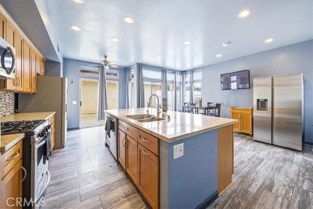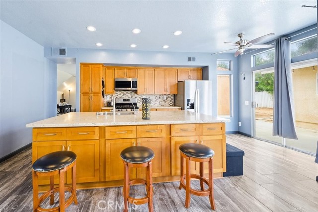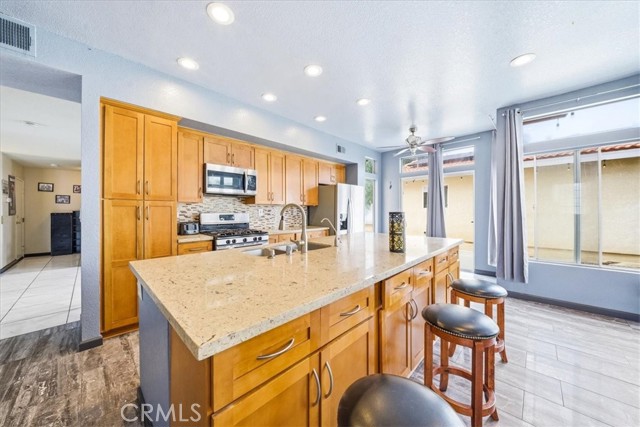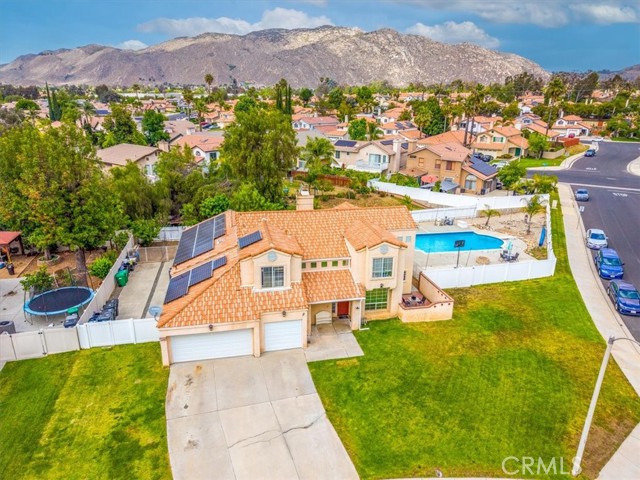 Don't miss this incredible ADU pool home opportunity in the highly desired Sunnymead Ranch community! The primary residence showcases an open floor plan with 6 bedrooms and a huge 40 foot pool complete with an extended hardscape, RV parking, and owned solar. The downstairs is equipped with upgraded flooring, 2 main floor bedrooms along with an office and large windows allowing tons of natural light. The kitchen overlooks the dining room and features a large island for entertaining and easy access to the backyard. The two-primary bedroom concept offers an option for downstairs or upstairs living with large walk-in closets and bathtubs in each. The downstairs primary bathroom features an easily accessible walk-in shower, while the upstairs primary bathroom showcases his and hers sink space. The downstairs also features an individual laundry room conveniently located with access to the hardscaped side yard with private RV parking. The backyard allows easy access to the secondary residence, complete with 2 bedrooms, 2 bathrooms, and its very own mailing address. The backyard is beautifully completed with one of the biggest pools in Sunnymead Ranch and features a beautiful concrete surround with vinyl fencing on the neighboring sides. Additional property features include a lemon tree, diving board, tons of attic storage, and paid off solar panels on the ADU (7 Panels). Convenient to area schools, shopping plazas, parks, and major freeways!