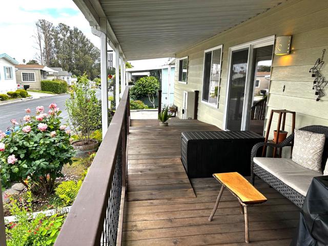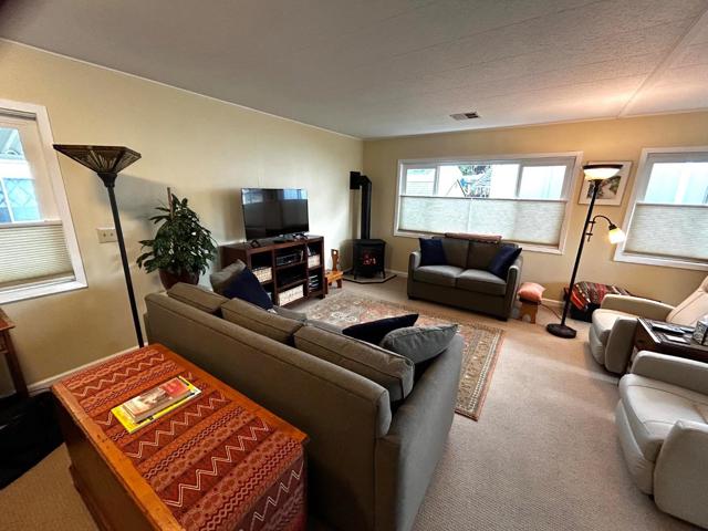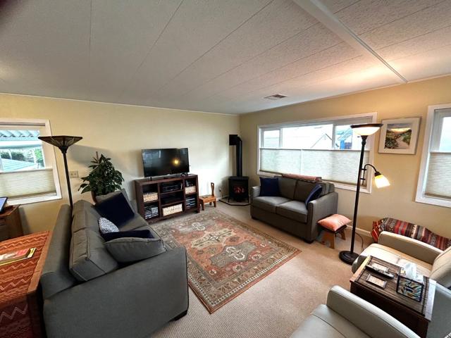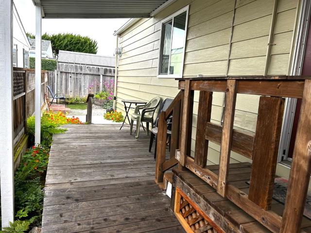 Spacious, updated home in the exquisitely maintained and upscaleVilla Santa Cruz. Home Is, across from the newly remodeled clubhouse, which features pool area, kitchen, billiards, Fireplace, and many community activities. Home has 100% wool carpeting, (for those with allergies). Freestanding gas fireplace adds ambience, as well as heat! Chairlift or stairs to the front door, with a lovely deck to have your morning tea. Exterior has been lovingly landscaped with drip system and low maintenance vegetation. Fenced yard in back and side, for those with a pet. Home has earthquake bracing, double pane windows, and Hunter Douglas window coverings. This home is light and bright, with an oversized living room. The two bedrooms provide comfort and privacy and each have generous closets with adjoining full bathrooms. All appliances are included, the washer and dryer are super sized! This is a wonderful community, only two blocks to the beach, Library; convenient to all amenities that Coastal Santa Cruz County has to offer.