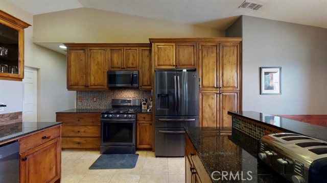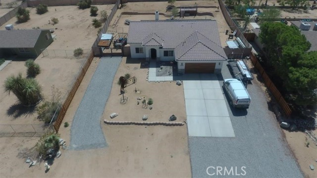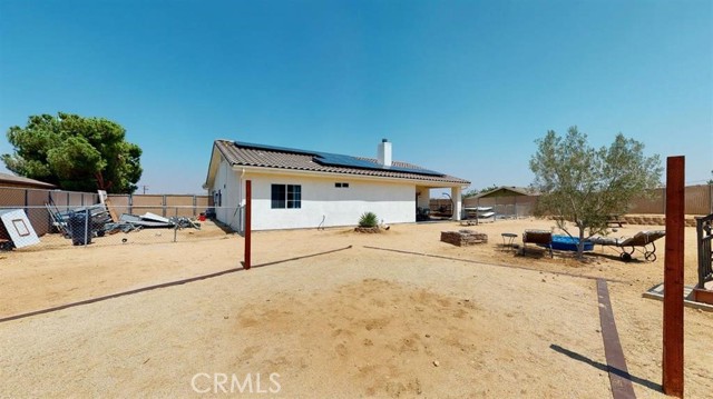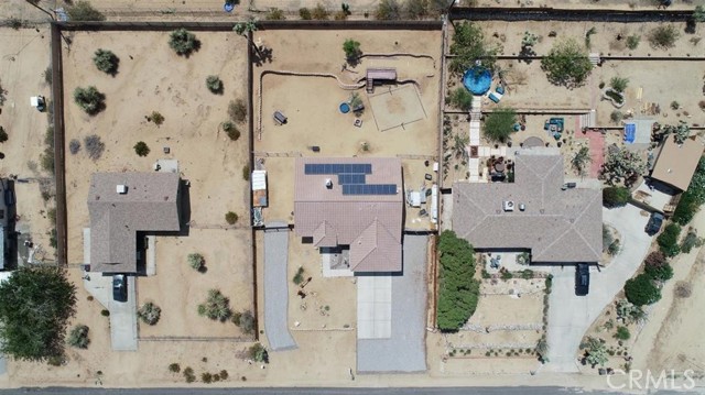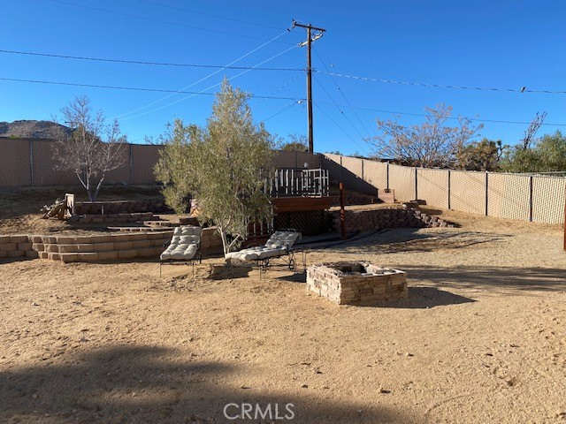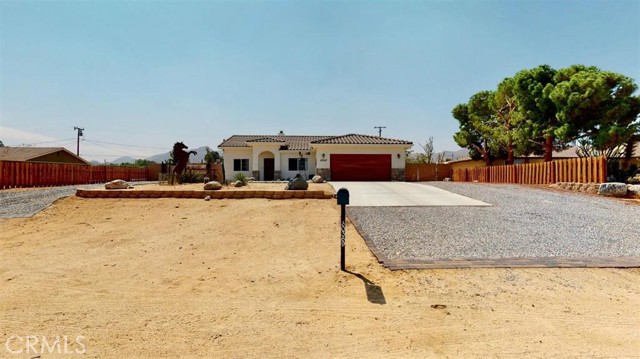 Your very own Desert Oasis. 25 miles from Desert Hot Springs and minutes from Friendly Hill Park. Joshua Tree National Park is just 6.2 miles. This beautiful home features 3 bedrooms and 2 bathrooms on almost half an acre of land. Granite top counters with matching appliances that bring an amazing accent to the wood and glass door cabinets. Bathrooms have been upgraded with new flooring, walls and a shower in the master with rock tile floor and two shower heads. Fire place in the living room adds that perfect ambiance for those cool desert evenings. French doors leading to back yard have blinds built into the dual pane glass. These doors are also located in the master bedroom to backyard. Back yard has fenced areas on both side of the house and a deck already for your above ground pool. Privacy slats are through the chain link fence and a cozy little covered patio to relax on. View is an amazing desert and mountain landscaping. Property is solar powered at a low rate. Water Softening System supplies cleaner and softer water to you.
