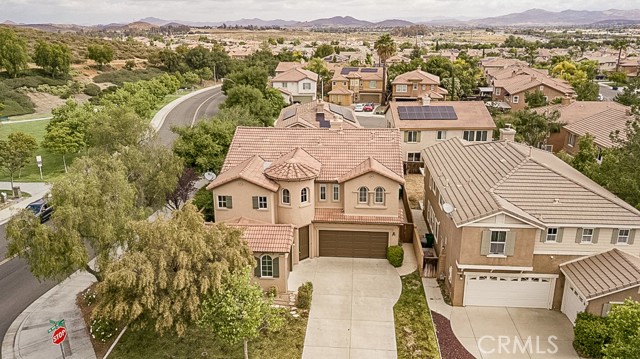 Set on an impressive 5,663 sq ft corner lot in Murrieta’s coveted Northstar Ranch enclave, this 2-story Spanish-inspired residence pairs inviting style with everyday ease! Arched windows overlooking a shaded lawn draw you in, while the foyer opens to a well-sized living area with tall ceilings, neutral tones, and a mix of gleaming wood-style and tile flooring that reflects the natural light from expansive windows. The dining alcove flows seamlessly into a striking kitchen where a sleek fireplace adds ambiance. Here, abundant cabinetry, a prep island with seating, and dual ovens make hosting feel effortless and enjoyable. Upstairs, the generous primary suite becomes a personal escape with its vaulted ceilings, oversized walk-in closet, and rejuvenating ensuite with a soaking tub ready for slow evenings. Your remaining retreats offer soft carpeting and ample storage, with a main-level bedroom that adapts easily for overnight visitors or as a productive remote office. Outside, your fenced backyard creates a sense of seclusion, while the wide patio sets the stage for relaxed weekend BBQs. A laundry nook and an attached 3-car garage with an extended drive and EV charger add convenience. Near top-rated Murrieta schools, parks, trails, and Lake Skinner Recreation Area, and with quick access to the 15 and 215 Fwys and nearby Temecula Wine Country, life here feels connected yet comfortably removed. Come experience where your next chapter could begin!