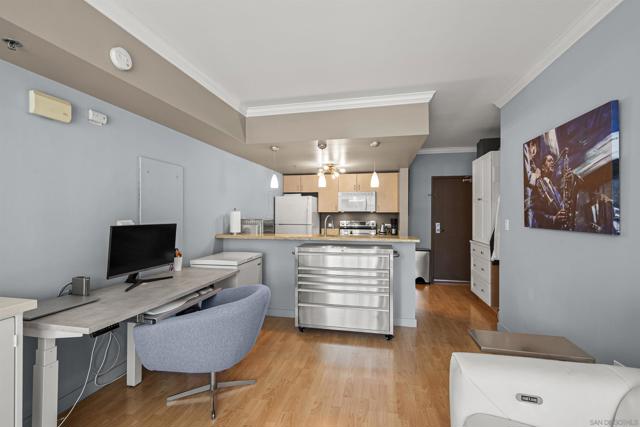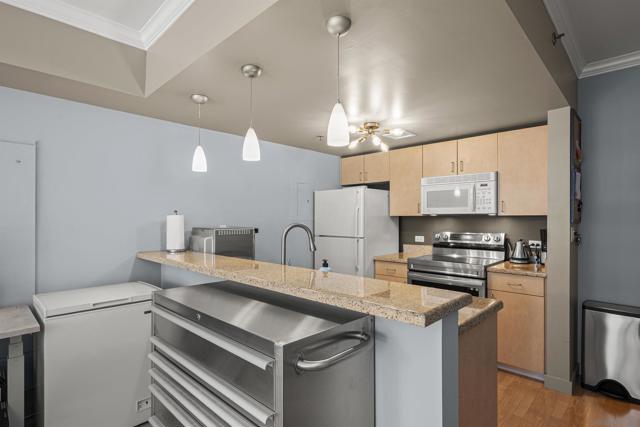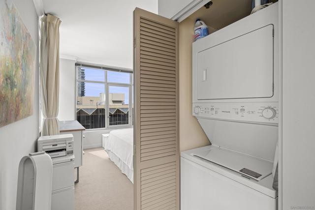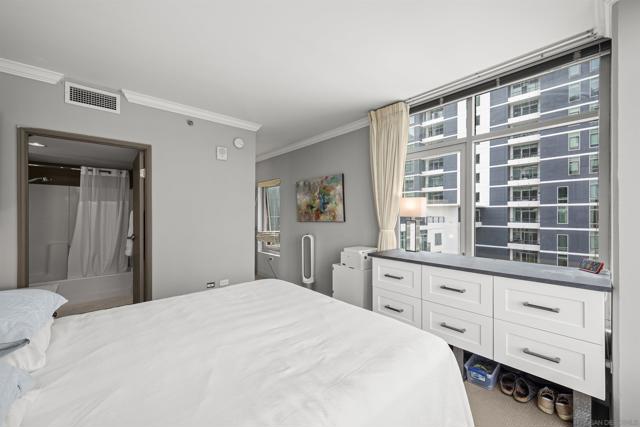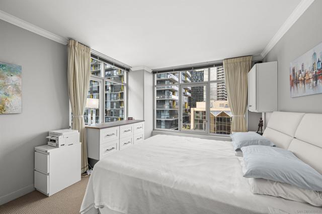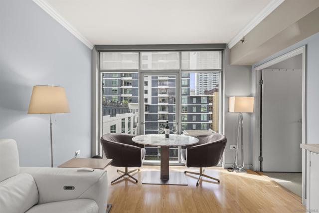 Live steps from 100+ restaurants in Acqua Vista’s North Tower, where floor-to-ceiling windows frame stunning city skyline views. Located in the highly desirable Little Italy neighborhood, you’ll enjoy access to over 100 restaurants, a vibrant weekly farmers market, and a lively, walkable atmosphere with endless dining and entertainment options. Enjoy effortless access to the pool, spa, and BBQ area right on your floor. Amenities include a fitness center and front desk service. This light-filled unit features custom window coverings, granite counters, in-unit washer/dryer, and one parking space. Valet parking included at no extra cost.